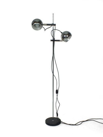 Article number 5736 A very rare Dutch Design floor lamp by Anvia Almelo (the Netherlands). The lamp has a beautifully blue colored shade, a chrome-plated metal arm with a counterweight at the end and a black metal base. The lamp … Continued