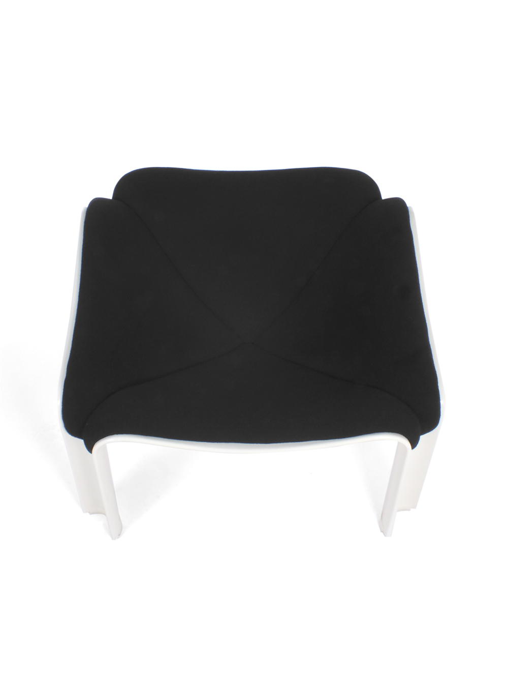Pierre Paulin ontwierp in 1967 deze F300 fauteuil voor Artifort (Nederland). De F300-serie bestaat uit een gevormde polyurethaan schaal. De poten zijn voorzien van transparante PVC-kapjes om ze te beschermen. Deze stoel heeft een losse inlegschaal die bekleed is met zijn originele zwarte wollen stof.