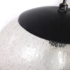 Ronde glazen hanglamp met kleine luchtbellen en zwart metalen afsluiting aan de bovenkant. Deze lamp wordt toegeschreven aan Raak Amsterdam.