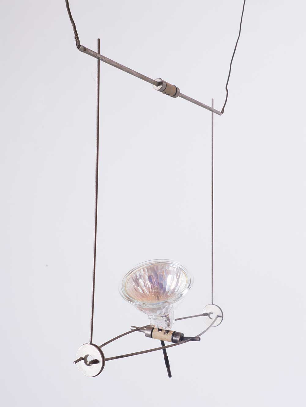 Het systeem bestaat uit een transformator en 2 kabels, op deze kabels kun je verschillende elementen plaatsen, door ze er simpelweg overheen te hangen.