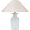 Grote, elegante, glazen tafellampen passend in bijvoorbeeld een Hollywood Regency interieur. Wit glas met een groene baan. De prijs is voor de set.