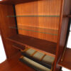 2 glazen plankjes in tafelkast, 2 zwart gelakte houten laden.