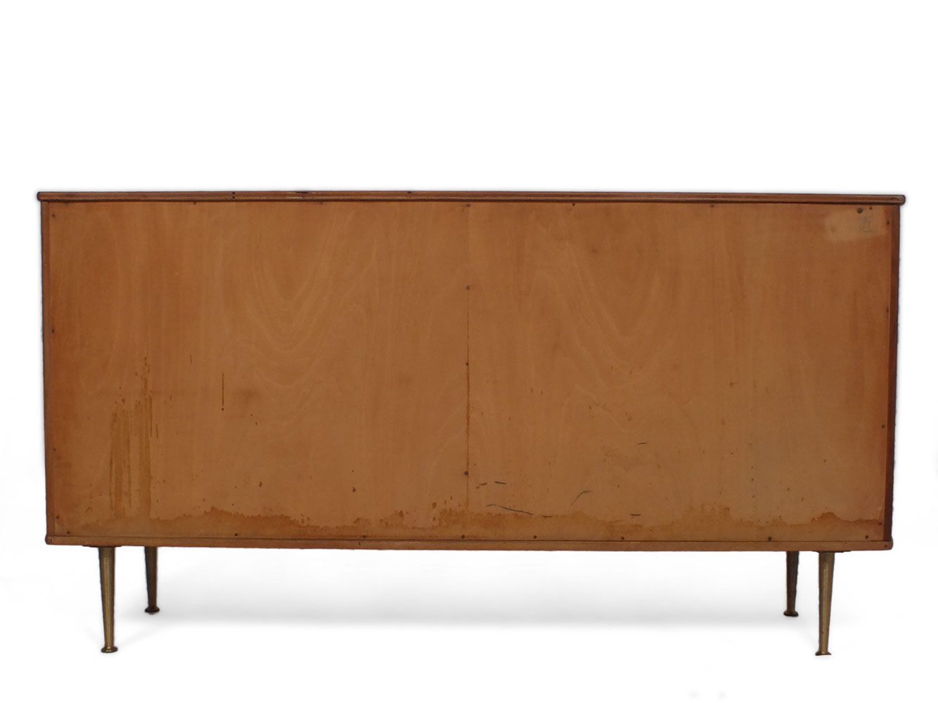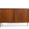 William Watting ontwierp een prachtige serie voor Fristho: de Modernord. Dit dressoir is een mooi stuk uit deze serie. Dit dressoir is gemaakt van ‘donkerblond’ notenhout fineer. Het heeft twee schuifdeuren met elk twee ronde handgrepen, aan de rechterkant drie mooi gevormde laden en aan de linkerkant een plank. Dit dressoir is aan de linker- en rechterkant afgerond en staat hoog op messing, licht taps toelopende poten. Een mooi voorbeeld van Nederlands Mid Century Modern Design.