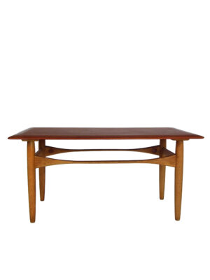 A delicated design by Aksel Bender Madsen for Bovenkamp. This coffee table combines a teak table top with oak feet.