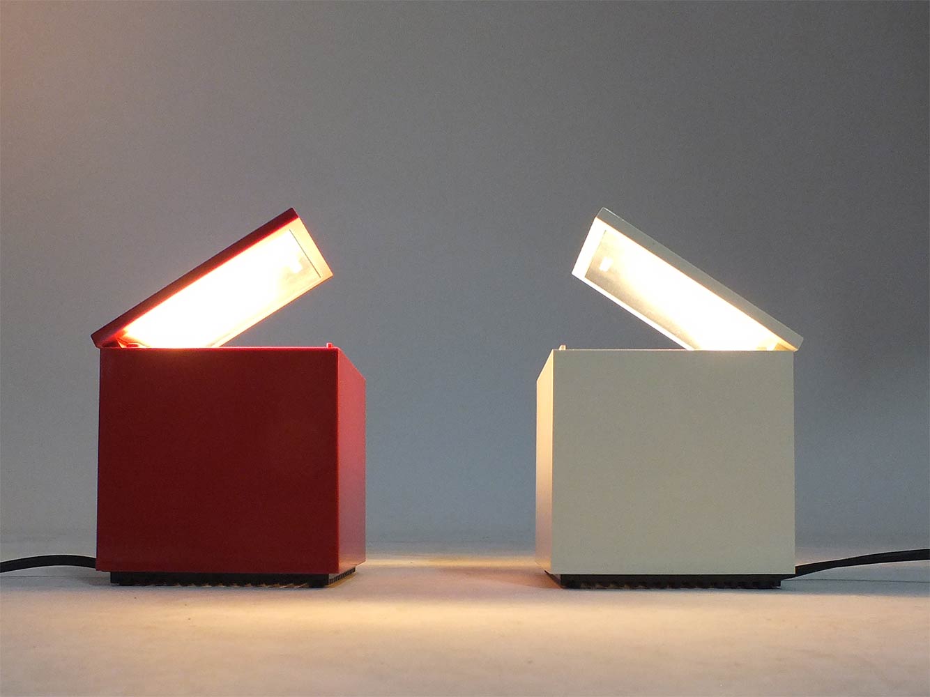 The Cuboluce was designed in 1972 by Franco Bettonica and Mario Melocchi for Cini & Nils. The lamp has been a Design Classic ever since. It is a small square box of 10 x 10 cm. If you open the lid, the light switches on. If you open the lid all the way, you get more light. Cuboluce is light in a box. Beautiful in a bookcase, on a windowsill, or on the floor near a large plant.