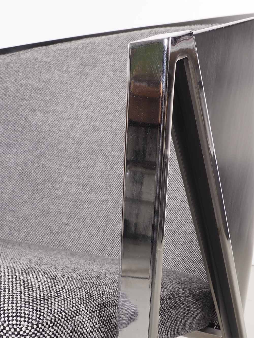 Jouko Järvisalo for Inno Interior OY, model ‘Mondi Soft’ armchair. The Finnish interior designer Jouko Järvisalo created this lounge chair with an unconventional shape. This lounge chair has a dynamic appearance, which can be seen in the armrests and legs, for example. While the sides show clean straight lines, the backrest is surprisingly curved.