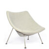 In 1954 Pierre Paulin designed the Oyster chair for Artifort Holland. A chair that embraces you; a shell in which you sit very comfortably and which supports your back. A shell that seems to float due to the slender “arachnid” chromed legs. This chair has been professionally refurbished with the right foam and re-upholstered with a light gray woolen fabric from Kvadrat: The Tonica 2 – 111. This Oyster is a real Dutch Design Classic.