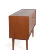 Nice small teak 60s sideboard with two doors and high, slightly tapered legs. Ideal as a television cabinet, a hall cabinet or as a cabinet in the bedroom.
